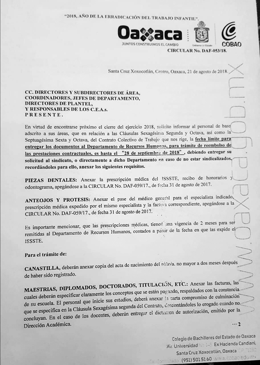 DE BACHILLERES DEL ESTADO DE OAXACA